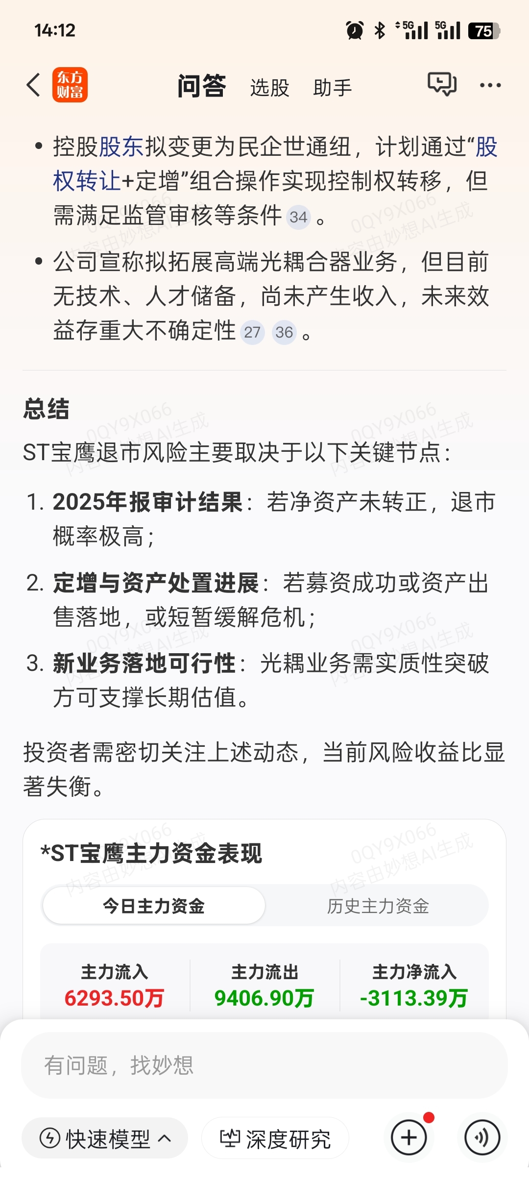 $*ST宝鹰(SZ002047)$ 这垃圾股要连续跌停板到12月31号,雷太大