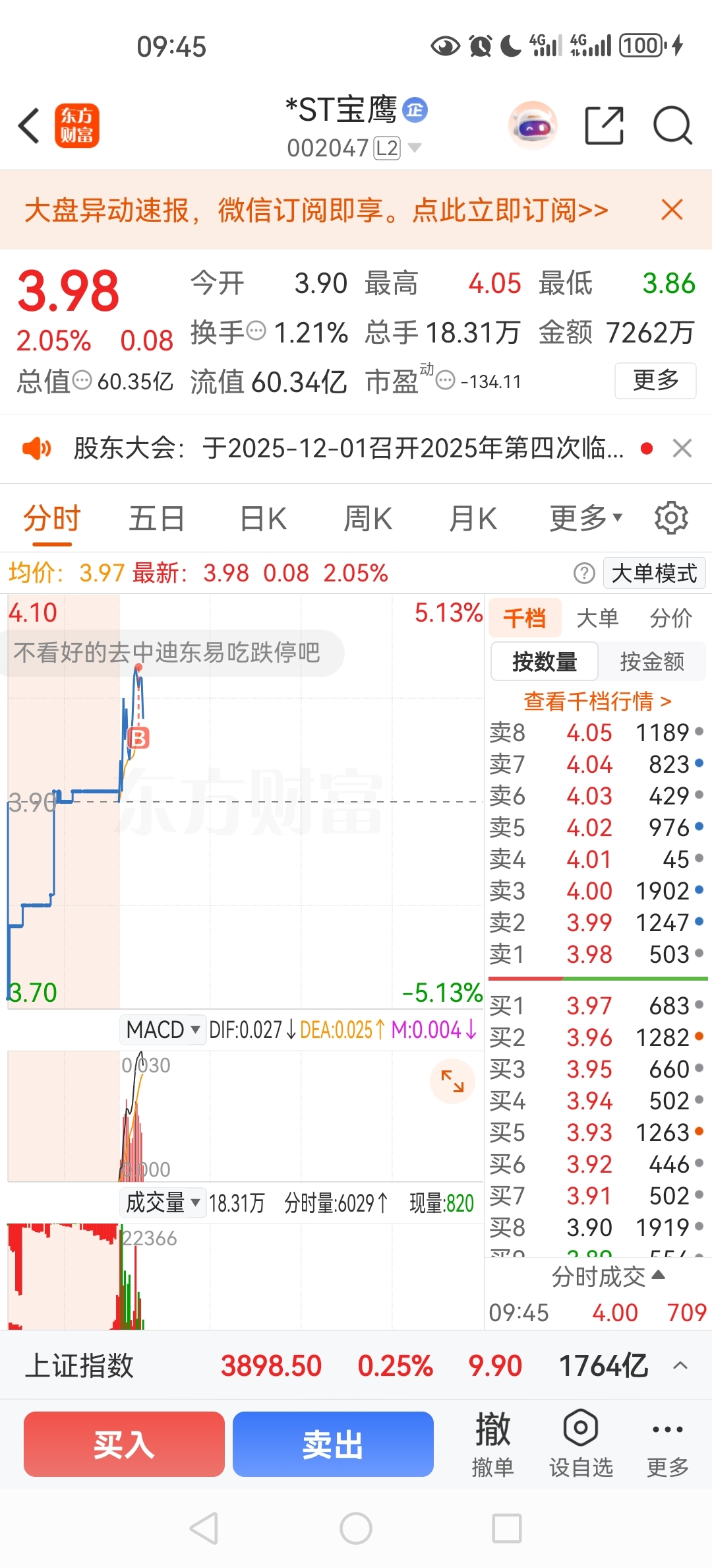 $*ST宝鹰(SZ002047)$ 我给买崩了。