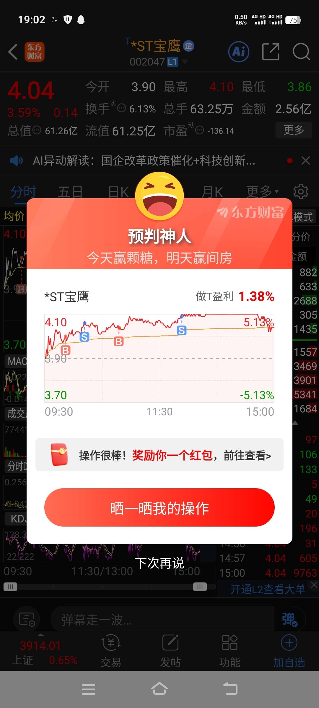 $*ST宝鹰(SZ002047)$ #炒股日记# #实盘记录# #复盘记录#