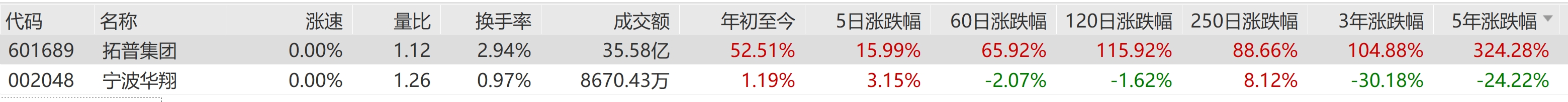 华翔上市以来的涨幅主要在2015年之前,15年以后几乎是原地不动,而拓普15年上