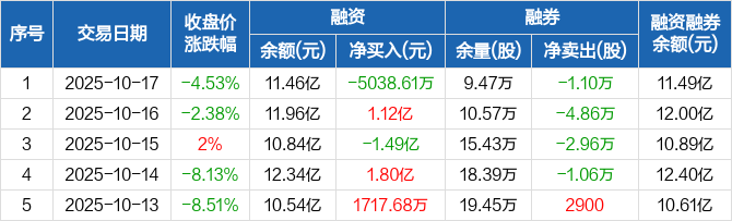 宁波华翔:融资净偿还5038.61万元,融资余额11.46亿元(10-17)