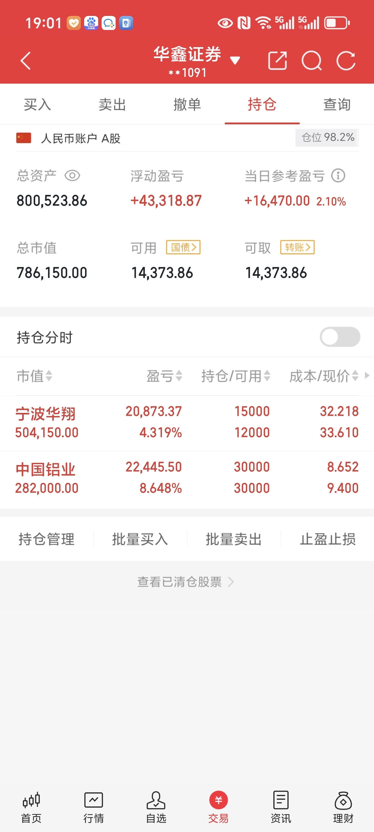 10月27日。-美好记录生活第89天。加仓:宁波华翔继持:中国铝业,宁波华翔。免