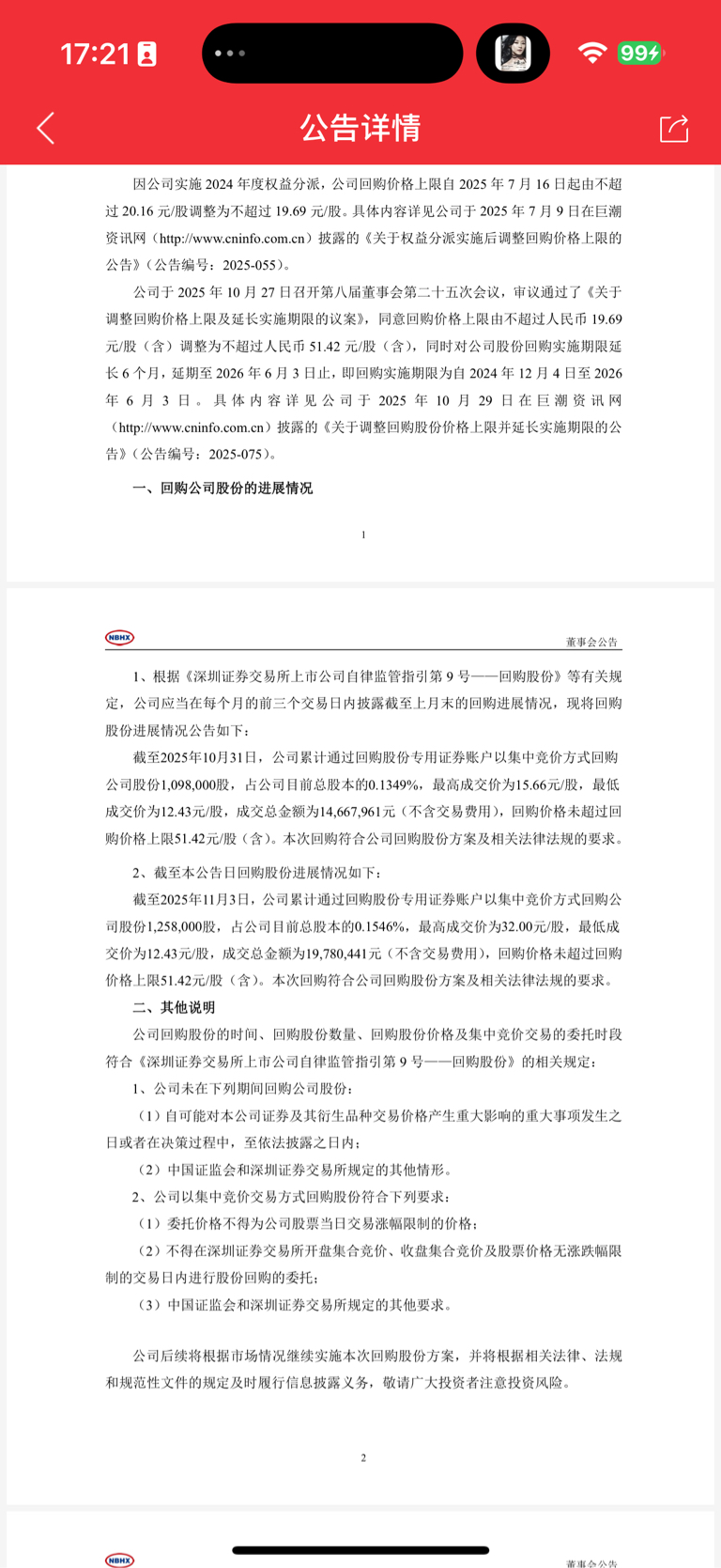$宁波华翔(SZ002048)$ 今天公告很有意思,看起来宁波是真打算回购了,31号决定回购,今天买了五百万,这周反而可以期待一下了啊?