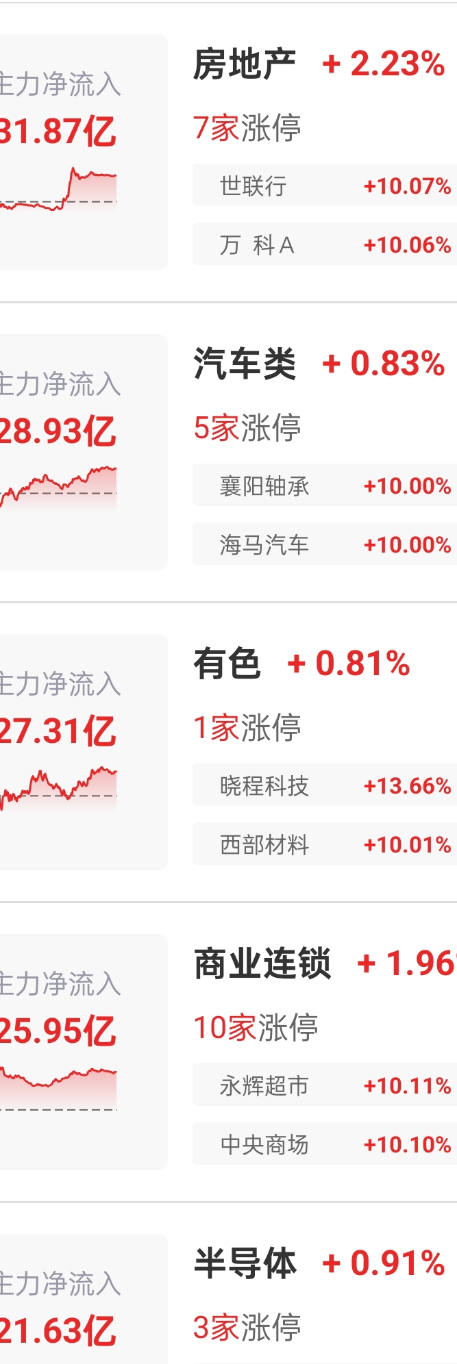 今天地产,汽车里机器选了3个,喜欢的自己点菜。商业连锁也挺火,不过涨4天了不太敢