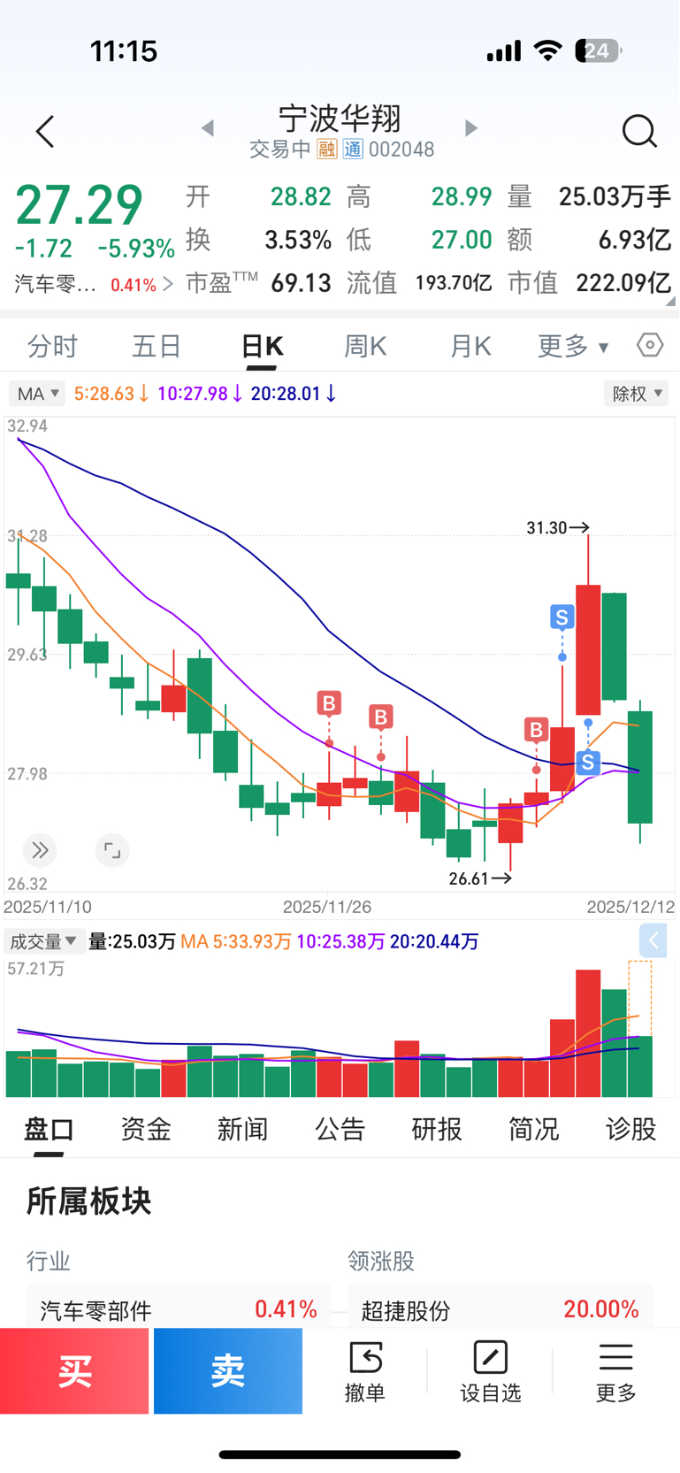 $宁波华翔(SZ002048)$ 定增股,趋势是往越低越好去的。我买入那天就知道不妙,后面备注了,拉升放量就跑。