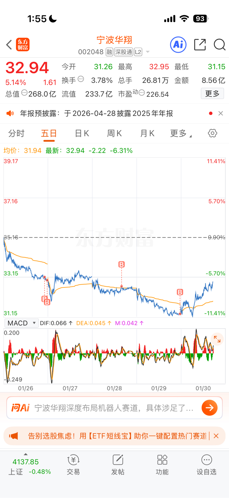 $宁波华翔(SZ002048)$ 最近科技板块这么难,三花智控进入阴跌模式我都不敢继续加仓了,但是一直对翔哥你坚持加仓。加油干,给我们点撒