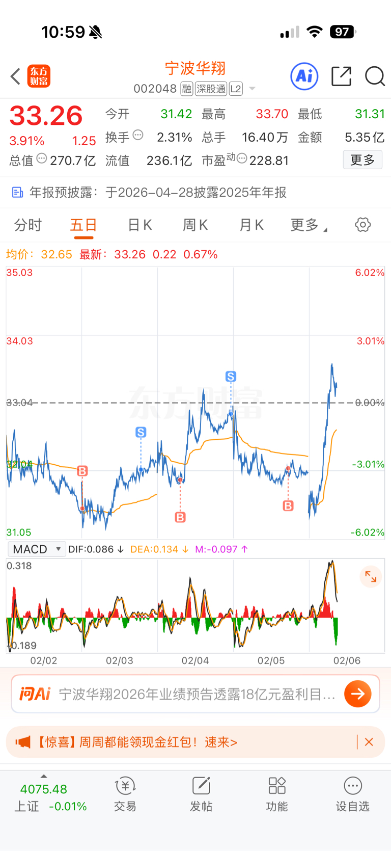 $宁波华翔(SZ002048)$ 翔哥,咋走成了日内做t的节奏?