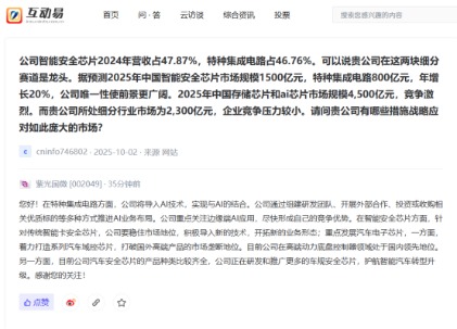 上证报中国证券网讯紫光国微14日在互动平台上回复投资者提问时表示,在特种集成电路方面,公司将导入AI技术,实现与AI的结合。公司通过组建研发团队、开展外部合作、投资或收购相关优质标的等多种方式推进AI业务布局。公司重点关注边缘端AI应用,尽快形成自己的竞争优势。在智能安全芯片方面,针对传统智能卡安全芯片,公司要稳住市场地位,积极导入新的技术,开拓新的业务形态;重点发展汽车电子芯片,一方面,着力打造系列汽车域控芯片,打破国外高端产品的市场垄断地位。目前公司在高端动力底盘控制器领域处于国内领先地位。另一方面,目前公司汽车安全芯片的产品种类比较齐全,公司正在研发和推广更多的车规安全芯片,护航智能汽车转型升级。