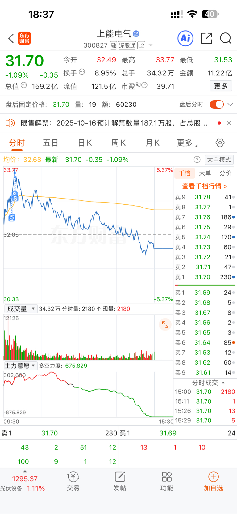 $紫光国微(SZ002049)$ 坐看明天 希望结果不要太差 $晶盛机电(SZ300316)$ 晶盛继续看好 $上能电气(SZ300827)$ 再见了上能