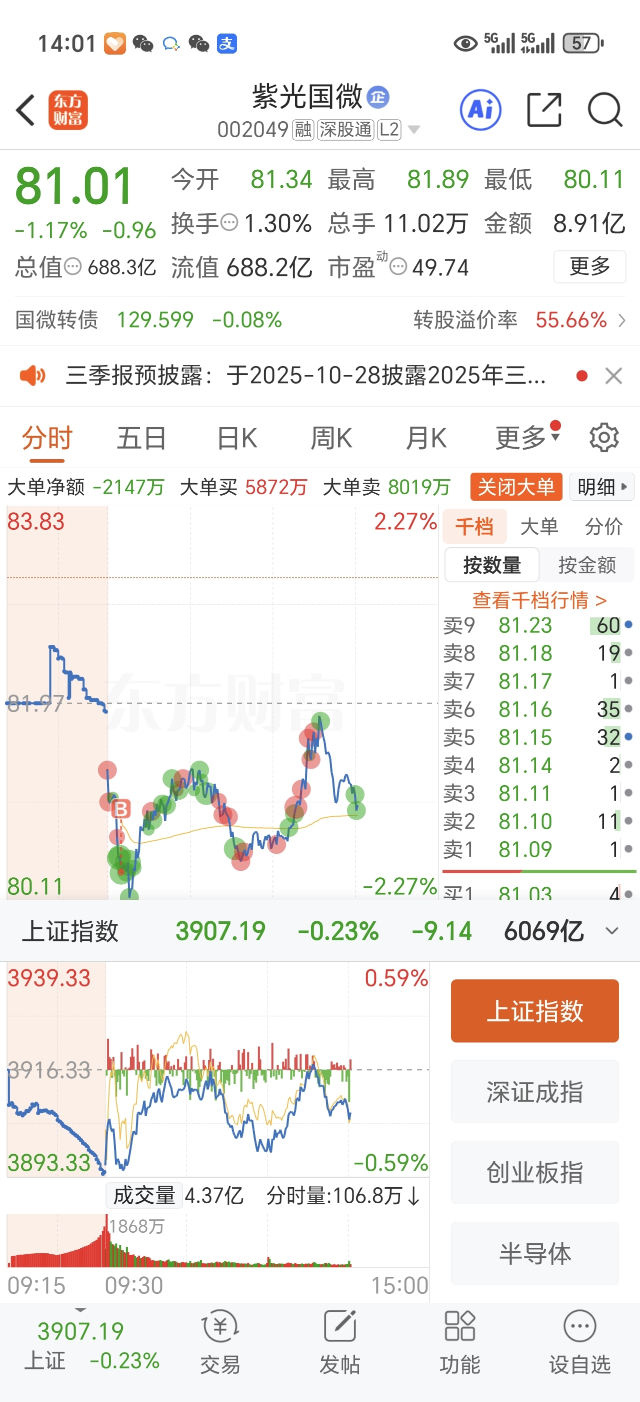 $紫光国微(SZ002049)$ 他是真跟大盘不他是真跟大盘不看大盘做量化