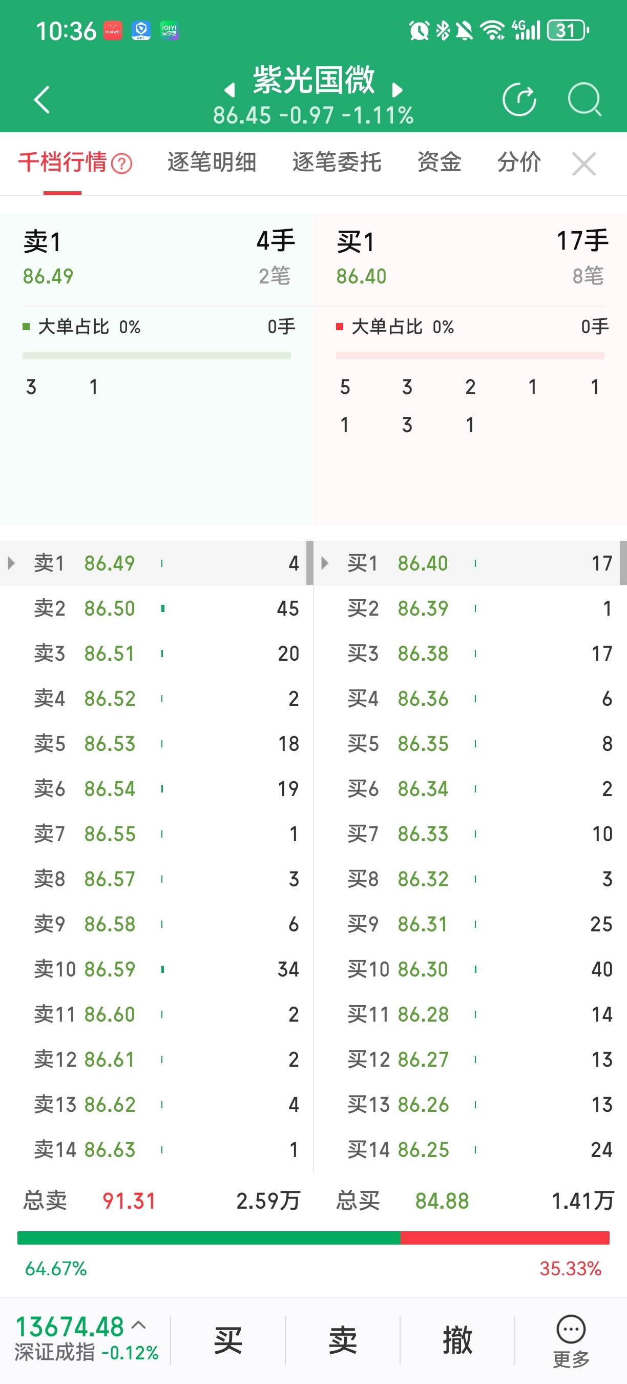 $紫光国微(SZ002049)$ 这公司真是绝了 盘口涨的时候一个一个价位上的,跌的时候七个价位跌的,和日线一样涨起来费劲,跌起来丝滑!