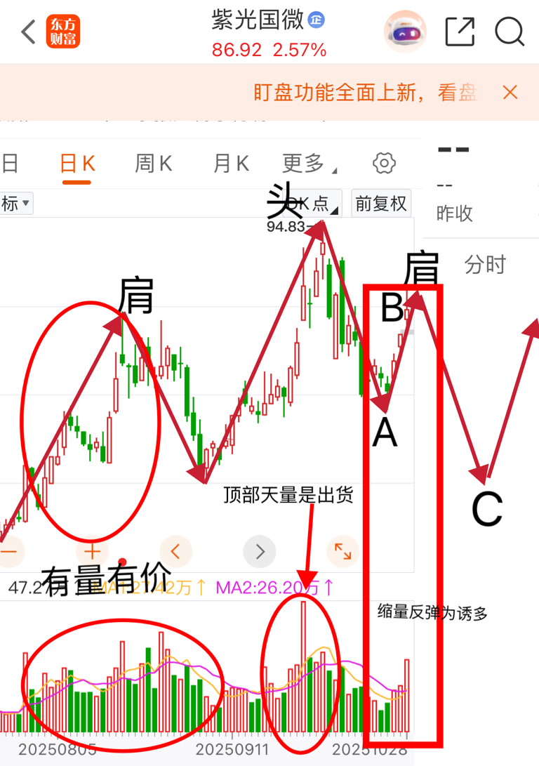 $紫光国微(SZ002049)$ 头肩顶最后一笔正在从B往C开始的路上!5天20%不见了