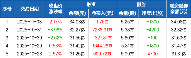 紫光国微:融资余额34.03亿元,创近一年新高(11-03)