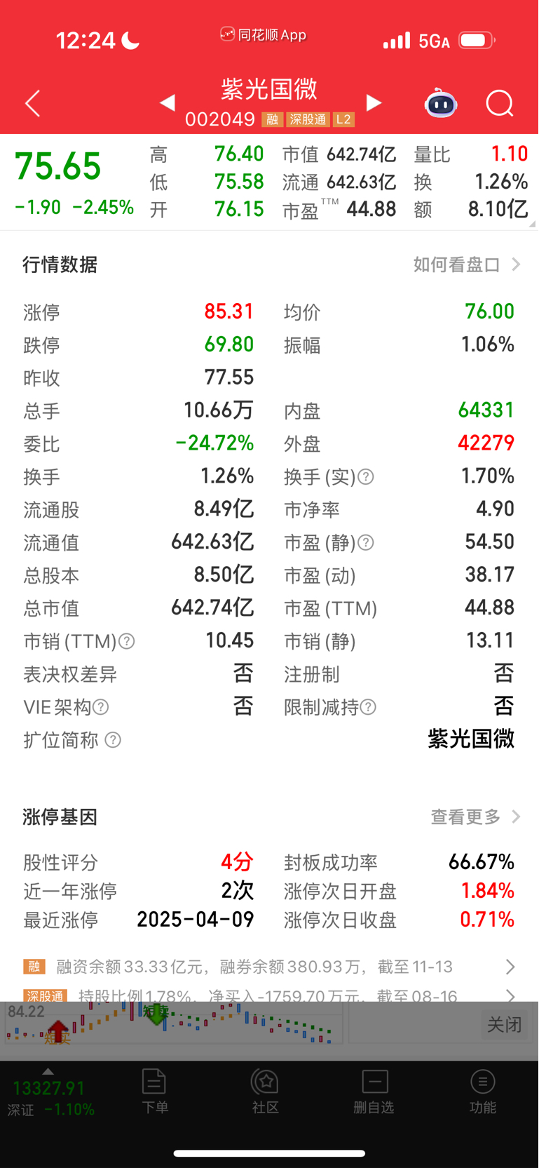 $紫光国微(SZ002049)$ 股性评分 4分,