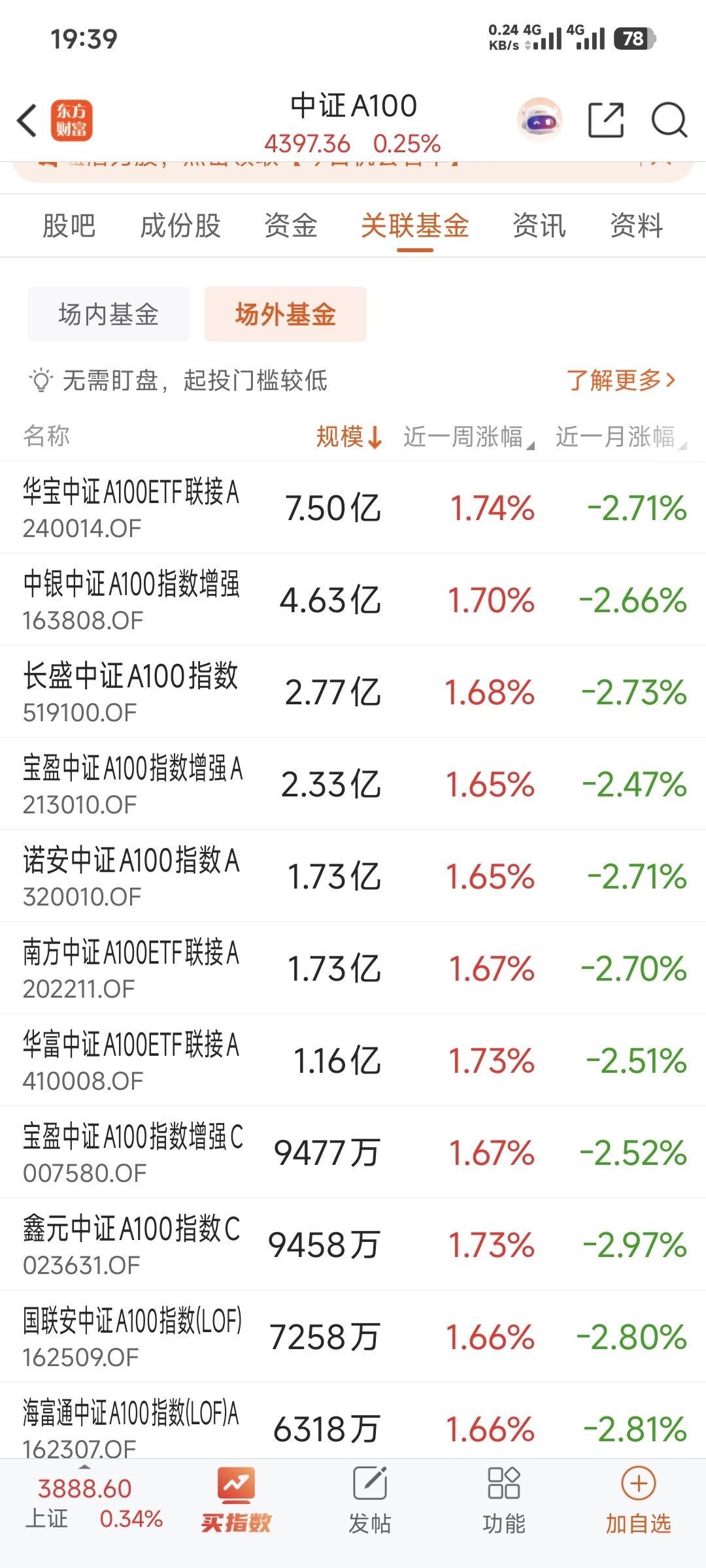 调出中证A100指数,短期肯定有一定影响,但影响不大中证A100,场内场外加起来