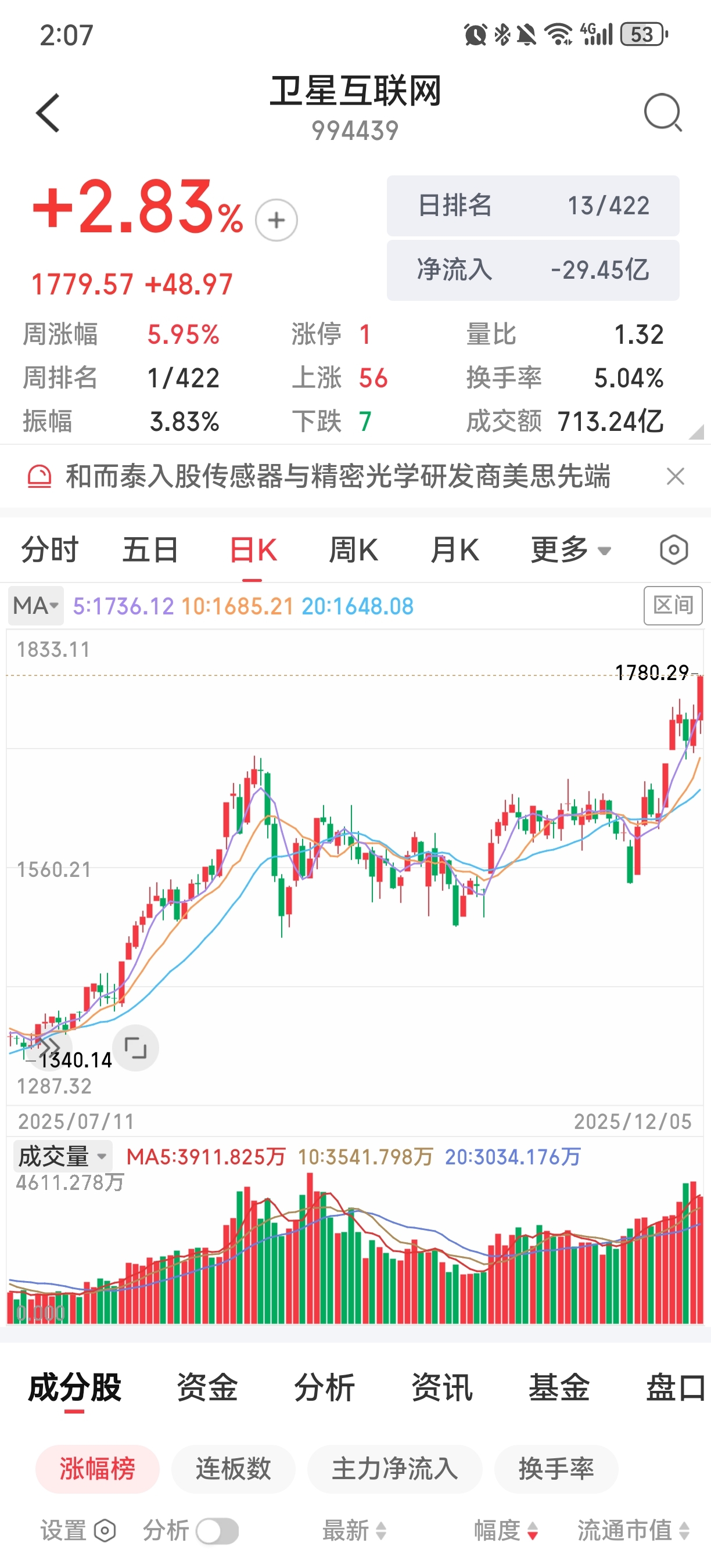 今天咋没人来吹卫星互联了!这股就是看业绩定价不跟题材的!半导体牛市大泡沫时代都给