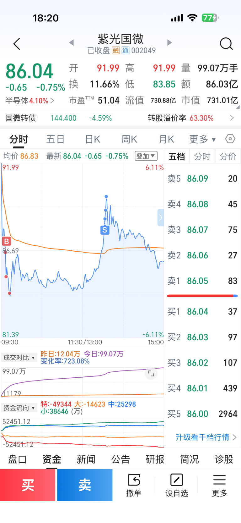 $紫光国微(SZ002049)$ 今天爽歪歪,T了1500股,底仓舍不得卖光