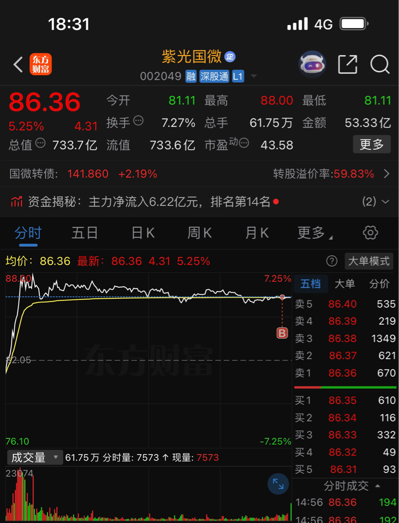 $紫光国微(SZ002049)$ 追涨进来的我,瑟瑟发抖