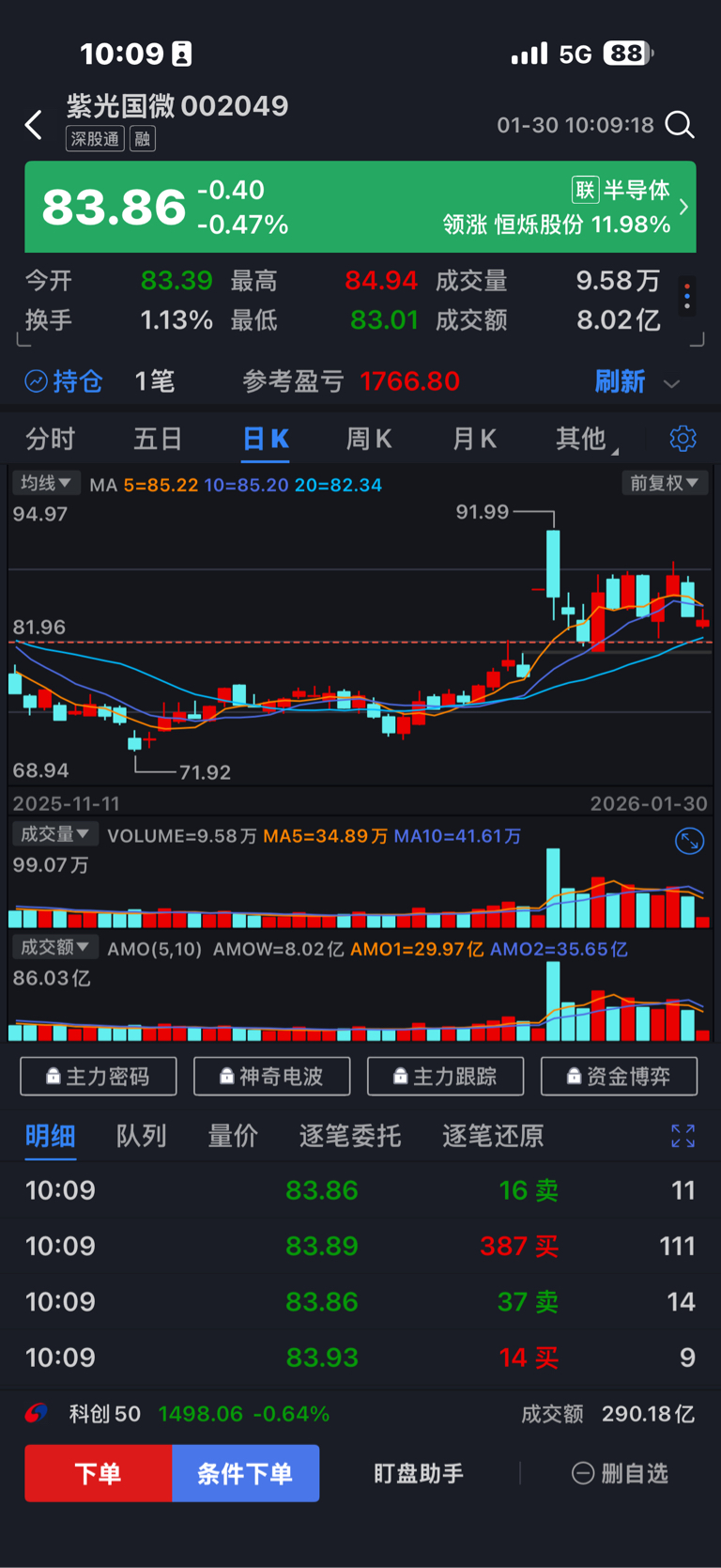 $紫光国微(SZ002049)$ 有图有真相 100股 坚决不动