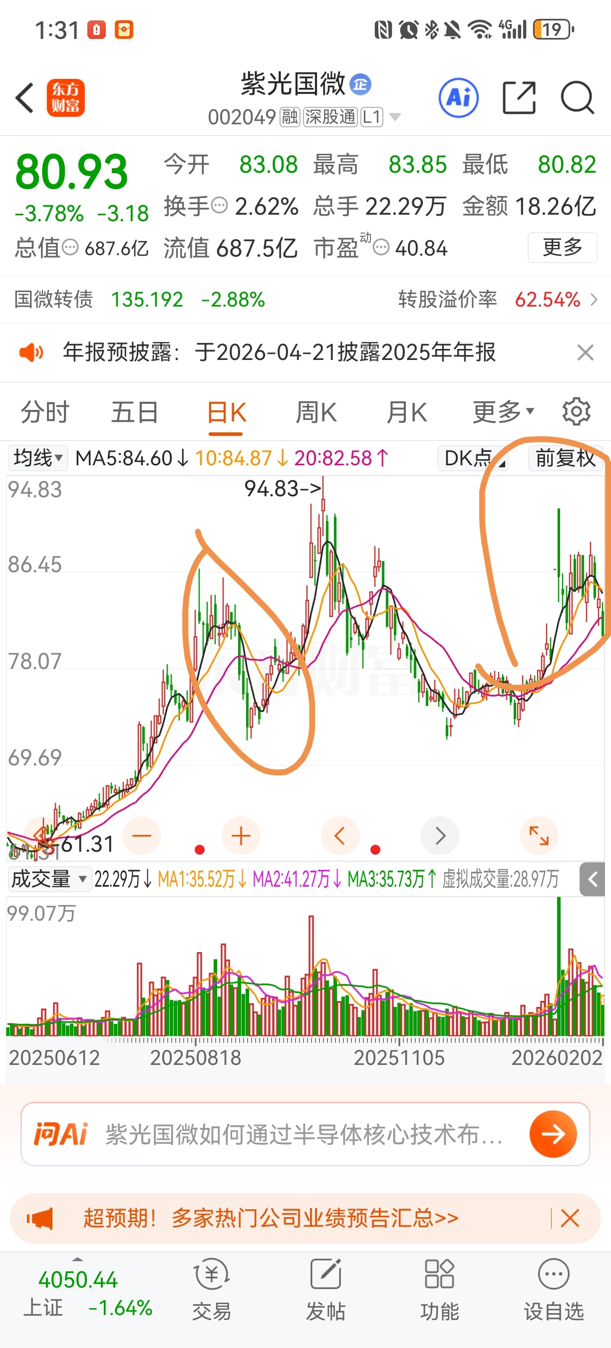 $紫光国微(SZ002049)$ 以后别头铁了,这种放量±大的平台千万做t,百分百就是破20日线!