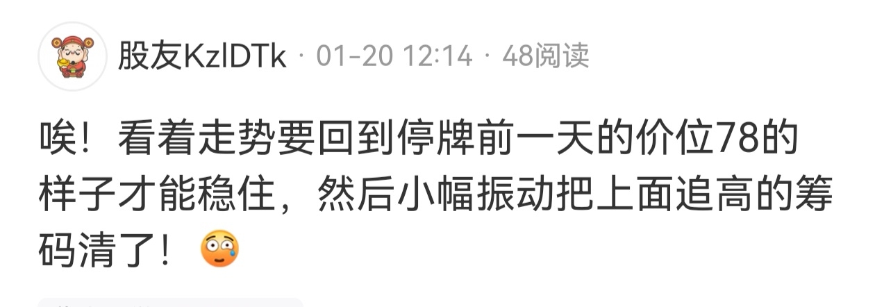 我又回来了,之前说大概去78价位,明天看能不能那个位置企稳,不破的话可以少量进仓