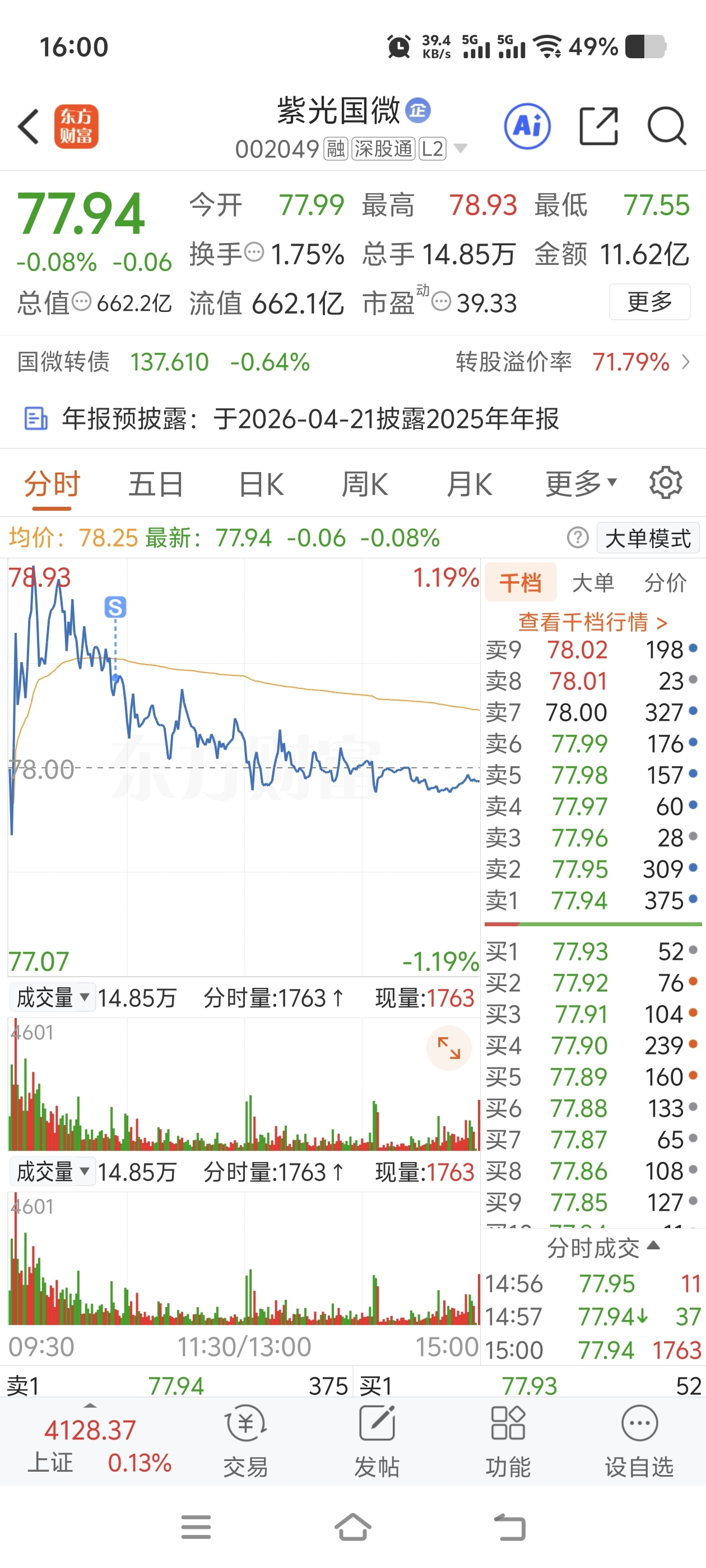 $紫光国微(SZ002049)$ 跑了,不知道对不对