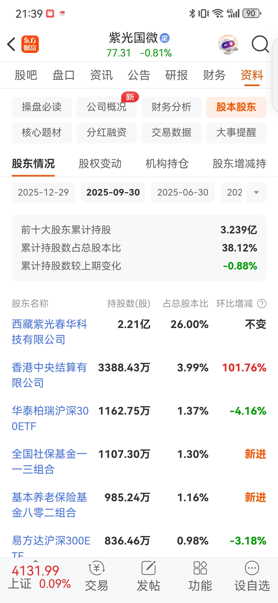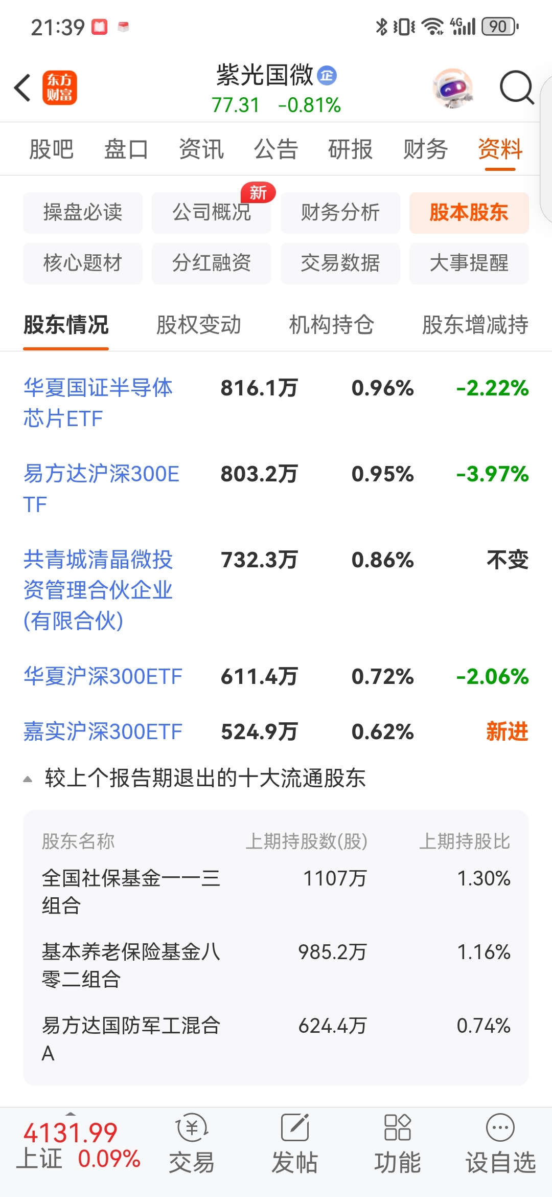 $紫光国微(SZ002049)$ 这个社保退出让人失望,非常地看不懂,财务报告和基本面均无“恶化”,只是股票价格从最低处涨近一倍,这个是退出理由?