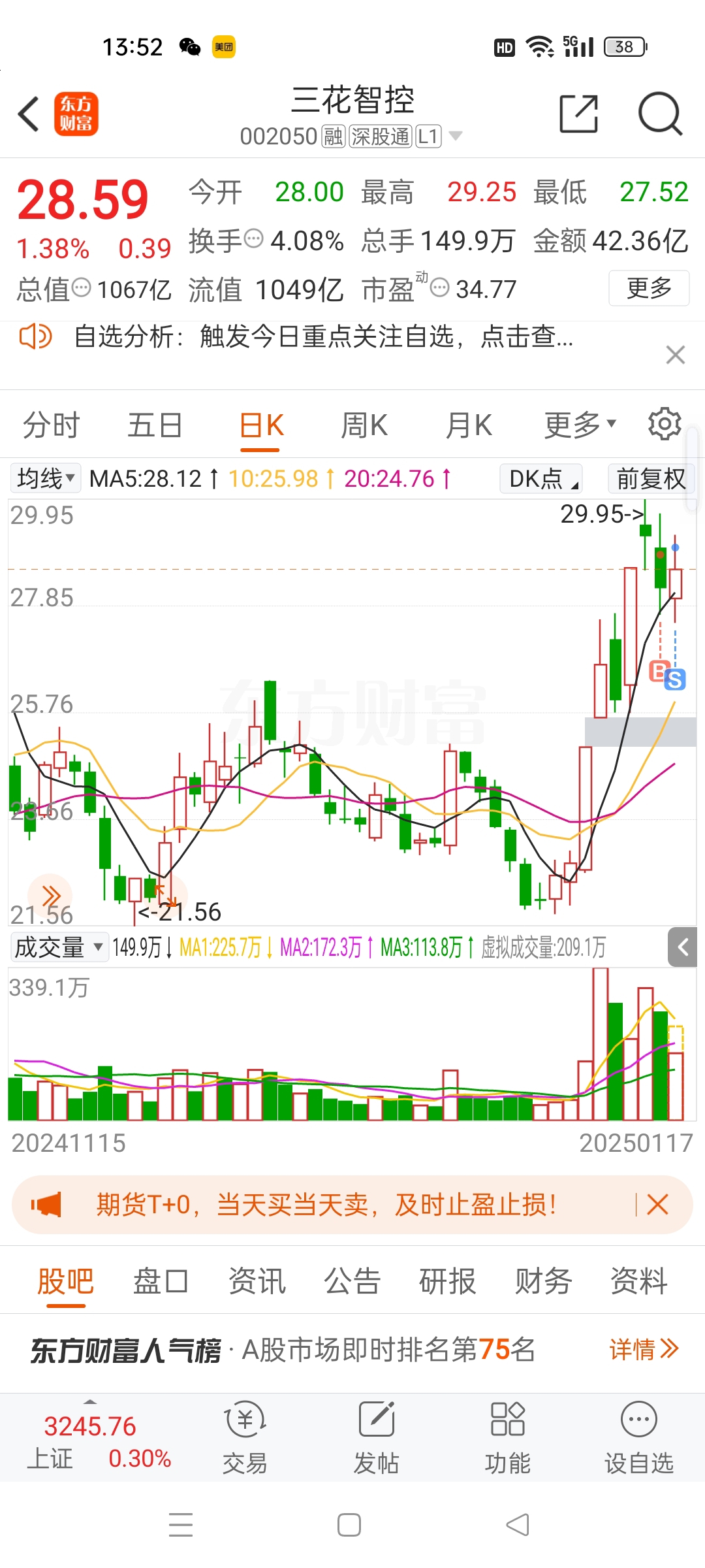 $三花智控(SZ002050)$ 不知道是不是卖飞了,就赚了几百块,哎小白一枚没经验