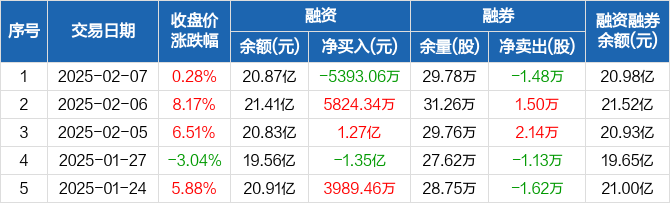 三花智控:融资净偿还5393.06万元,融资余额20.87亿元(02-07)