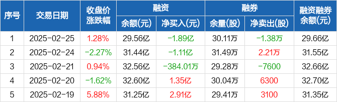 三花智控:融资净偿还1.89亿元,两市排名第三(02-25)