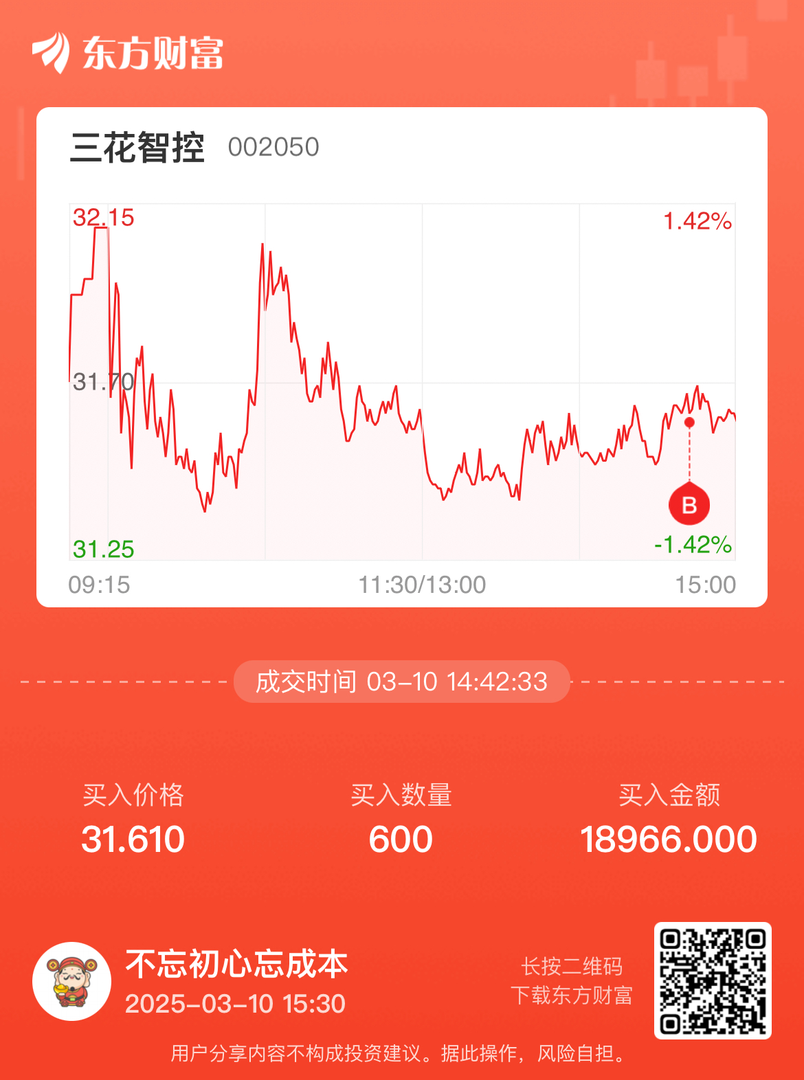 温馨提示: 1.根据《证券法》规定,禁止编造、传播虚假信息或者误导性信息,扰乱证券市场;2.用户在本社区发表的所有资料、言论等仅代表个人观点,与本网站立场无关,不对您构成任何投资建议。用户应基于自己的独立判断,自行决定证券投资并承担相应风险。《东方财富社区管理规定》