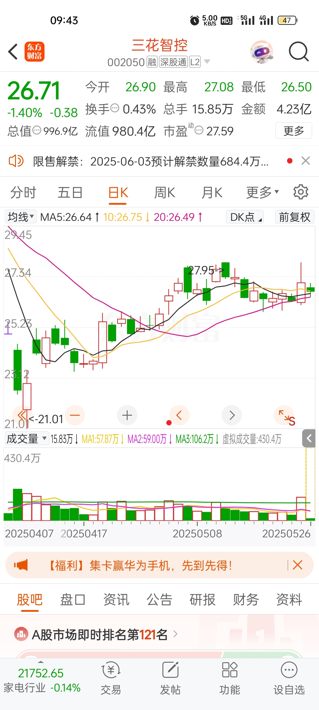 $三花智控(SZ002050)$ 成交量放出天量是不是主力在吸筹啊?后面会不会10连板涨停?我很想买