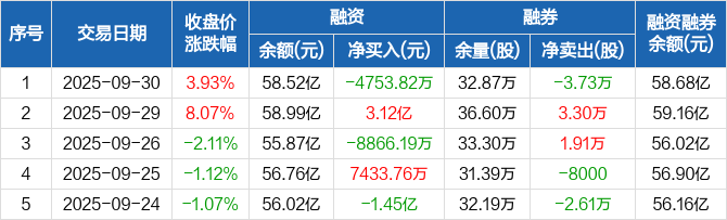 三花智控:融资净偿还4753.82万元,融资余额58.52亿元(09-30)