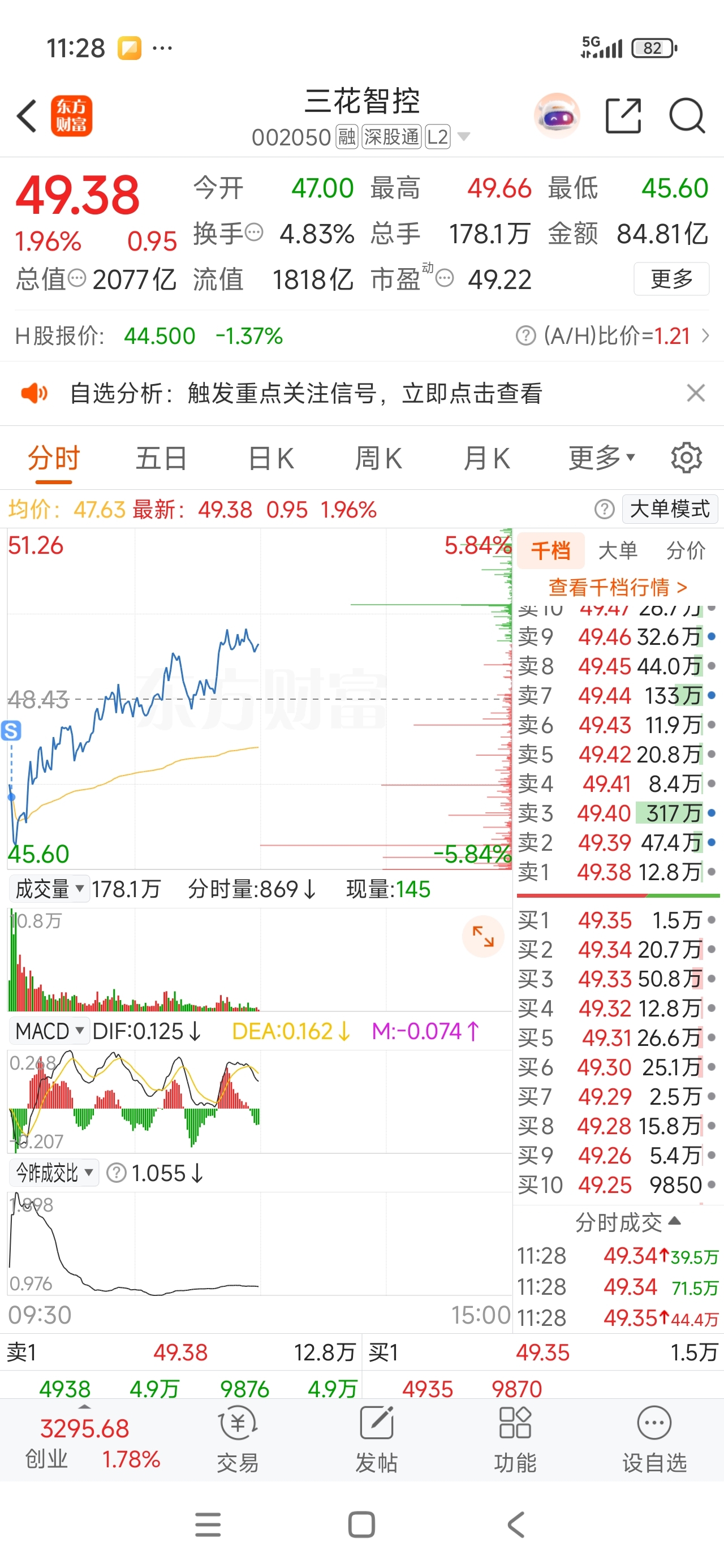 $三花智控(SZ002050)$ 早上把我吓跑了