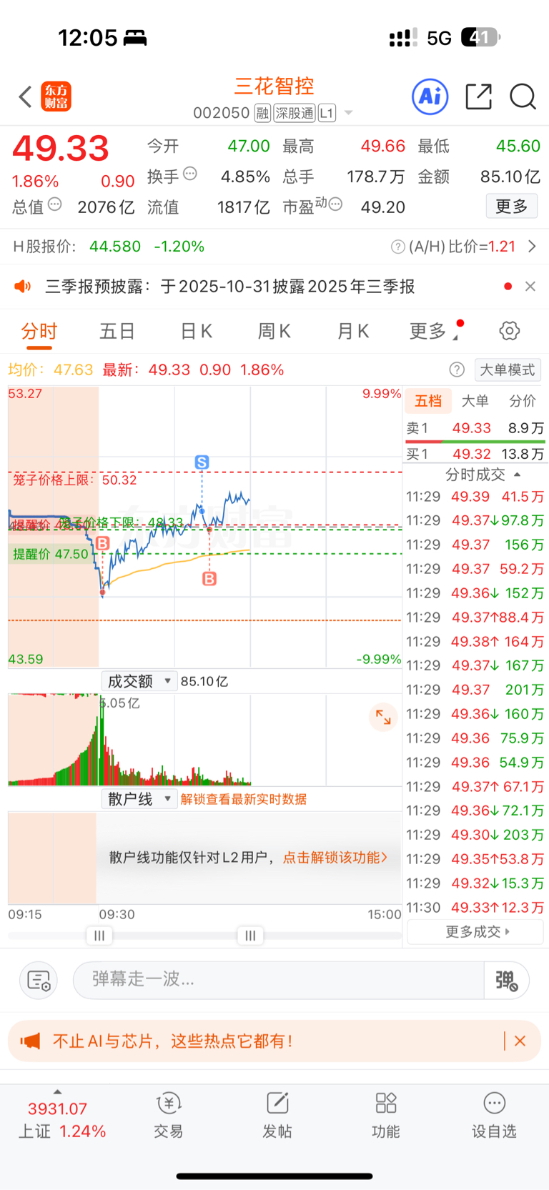$三花智控(SZ002050)$ 早盘恐怖砸盘下杀,现在已经稳住了,一起坚定的走下去!