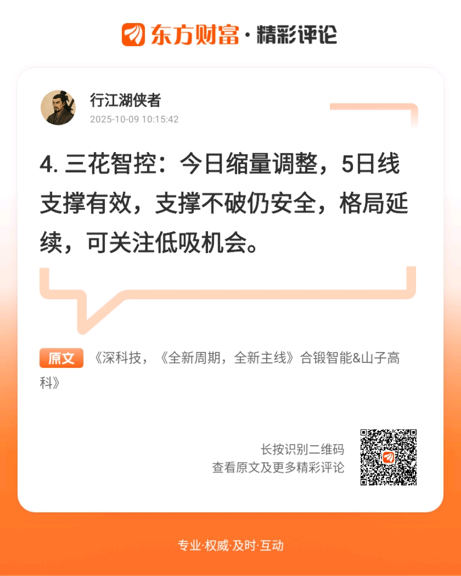 早上感谢你指点,,老师带得好,方向一路顺风。//@行江湖侠者 :4. $三花智控(SZ002050)$:今日缩量调整,5日线支撑有效,支撑不破仍安全,格局延续,可关注低吸机会。
