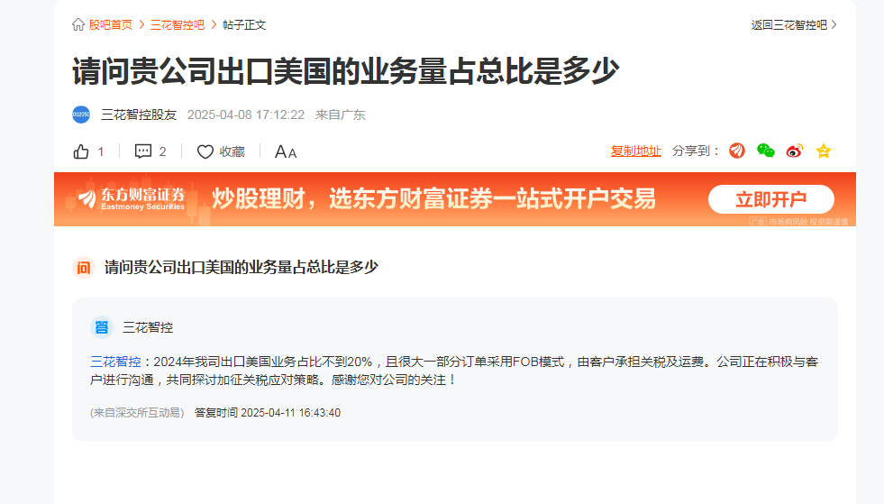 花花在美国的工厂不受关税影响,其他都在其他国家,从中国出去美国的不到20%,且是FOB交货。也就是只负责成本到大陆港口,装船后,运费和目的地的关税都是买家自己去负责。关税高低由买家自己去转移给市场。高科技产品附加上去的税不容易体现出来,关税只对低附加值的服装鞋帽食品日用品等有影响