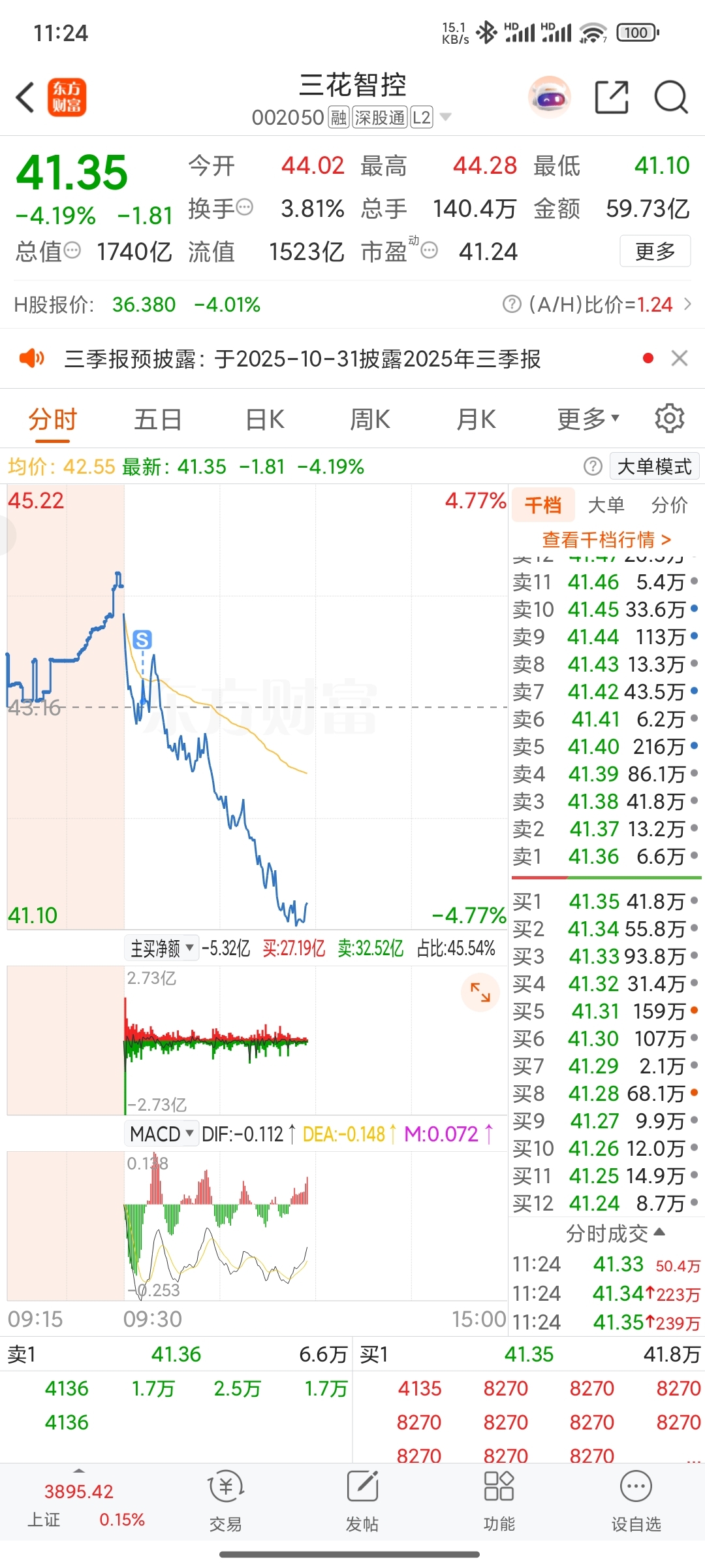 $三花智控(SZ002050)$ 昨天抄底进来的,准备博个反弹,开盘没走,翻绿才走,玩了个寂寞,结束了