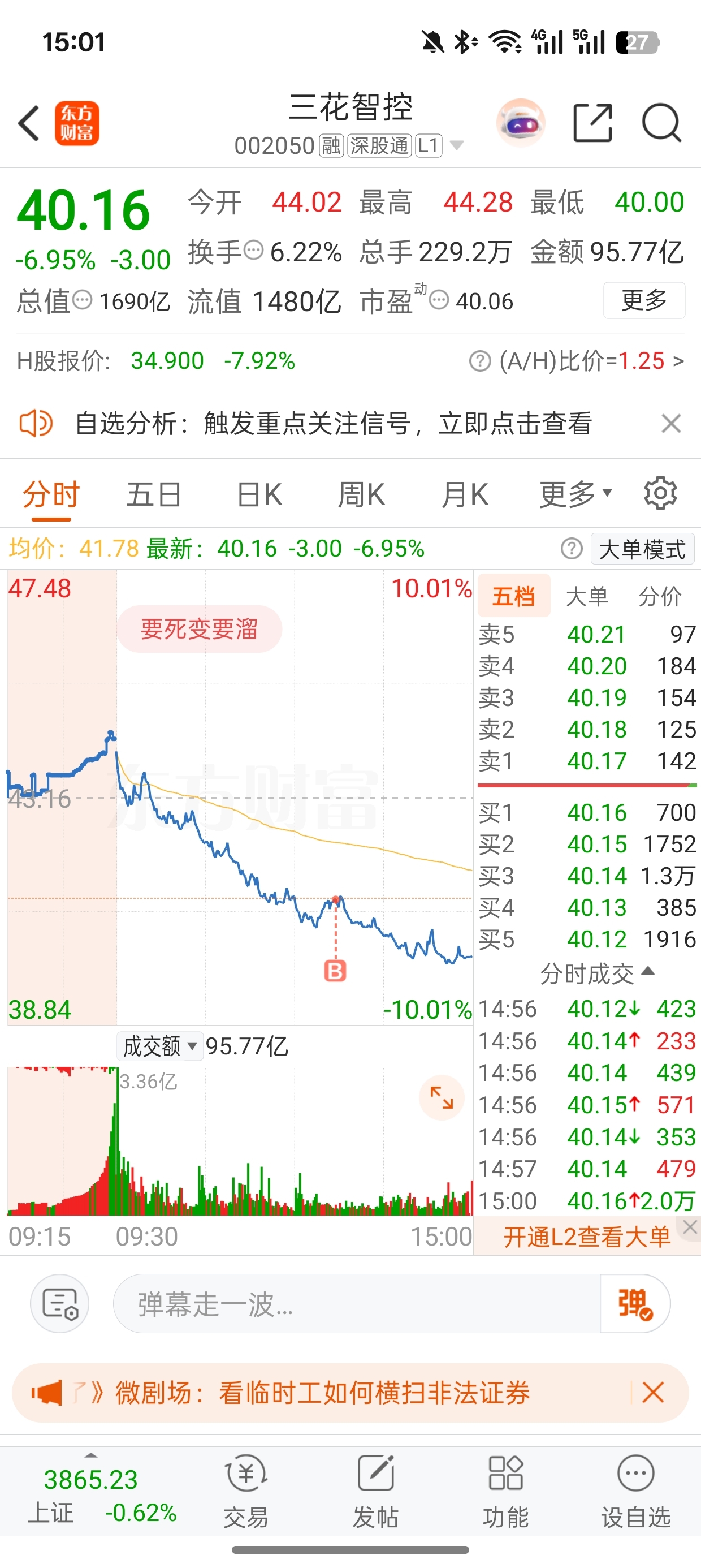 $三花智控(SZ002050)$ 以为抄底 结果抄在了半山腰
