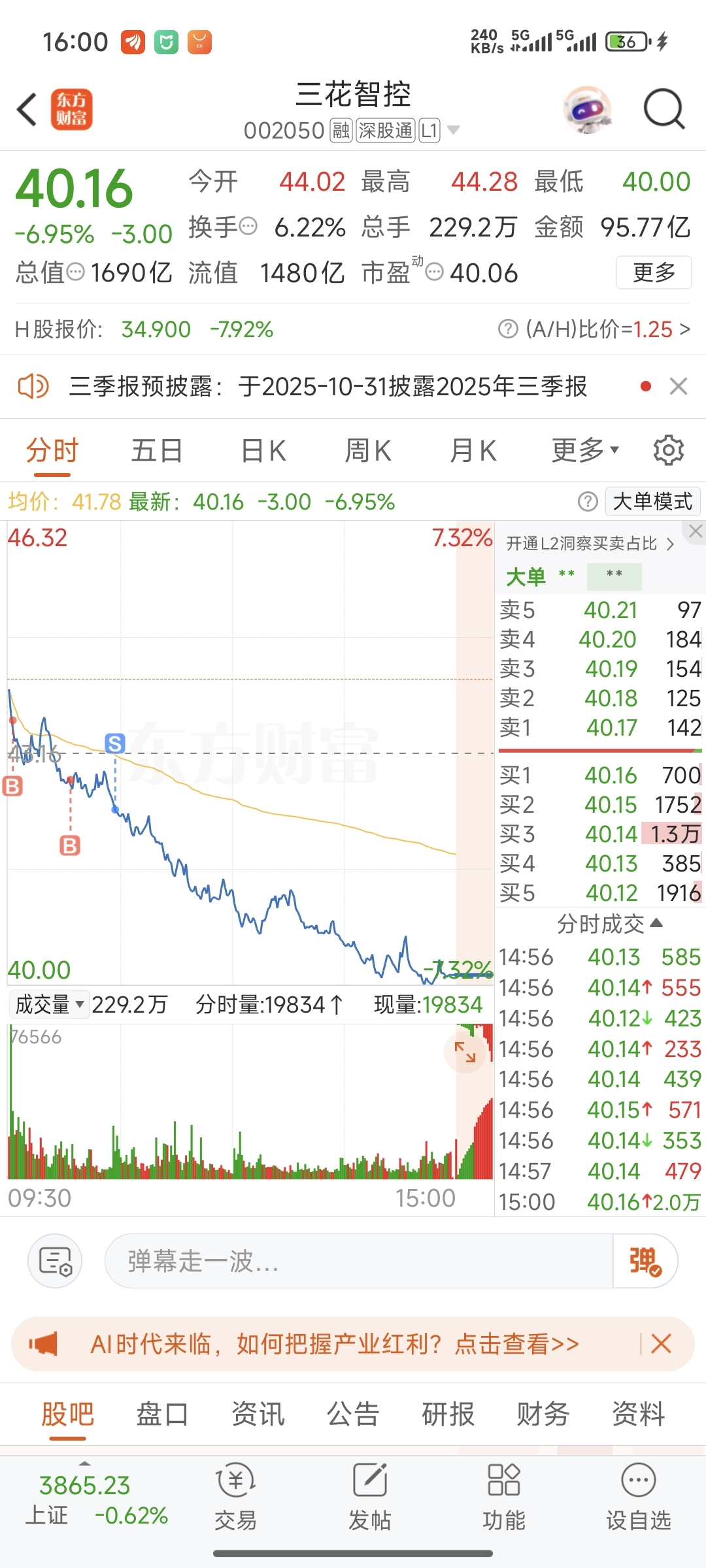 $三花智控(SZ002050)$ 昨天想抄你底结果只能看其他板块大涨,今天看大盘强加仓想做t结果给自己埋进去。主力xxxxxxxxx