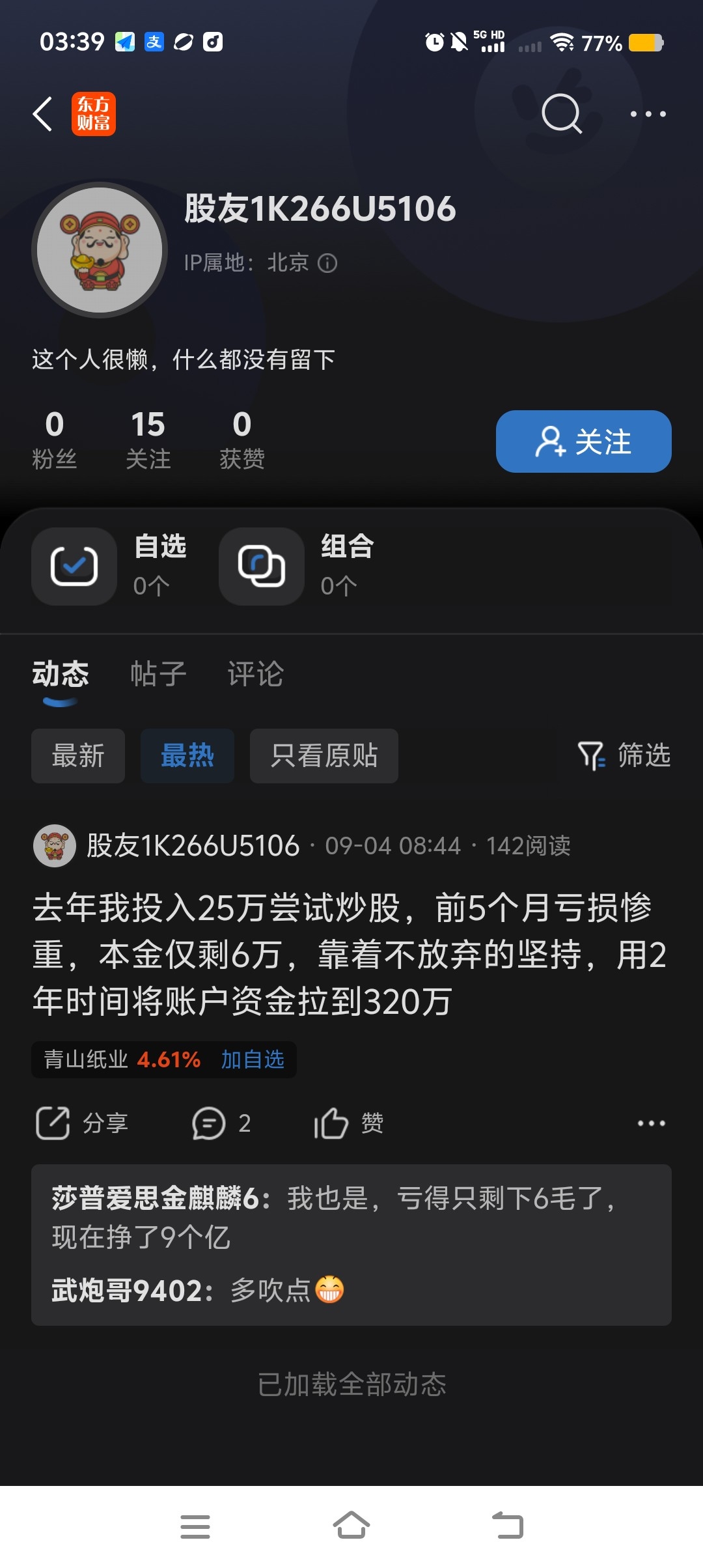 说个笑话,去年入市,亏了5个月,然后再经历两年,也就是2027年了,他赚了300
