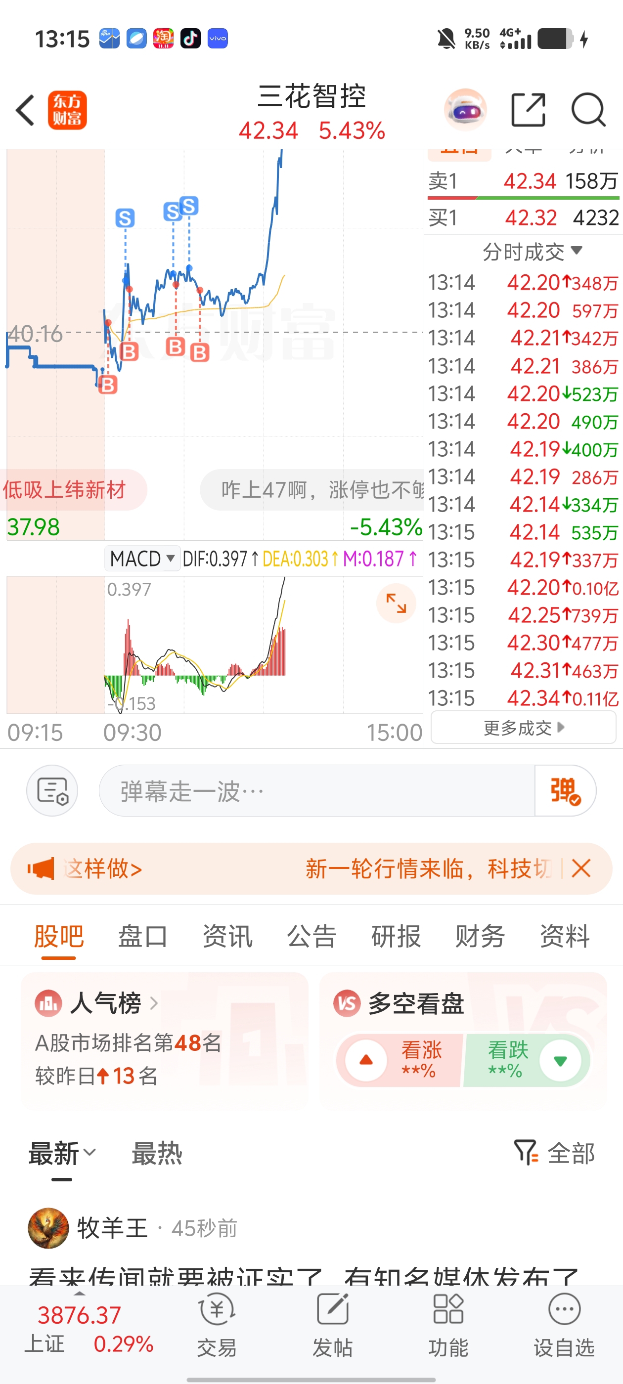 $三花智控(SZ002050)$ 我猴哥说到做到,今天把海南华铁卖了,买回三花我拿了半仓资金出去打,也买了海南华铁,赚了十个点,刚好平掉之前三花的跌下来的损失