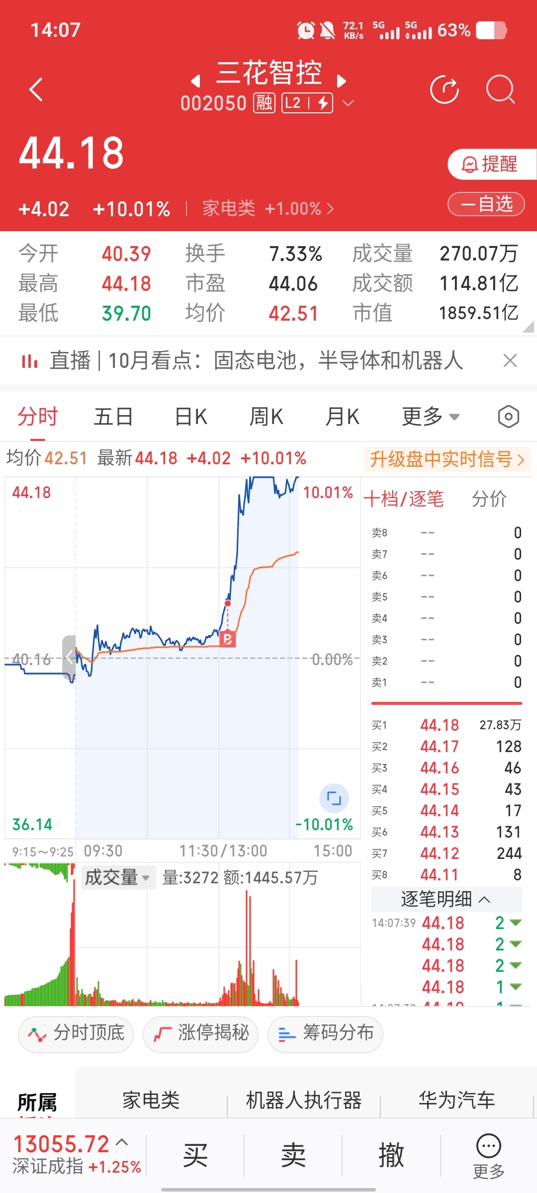 $三花智控(SZ002050)$ 机器人要回来了吗,主力进场了?