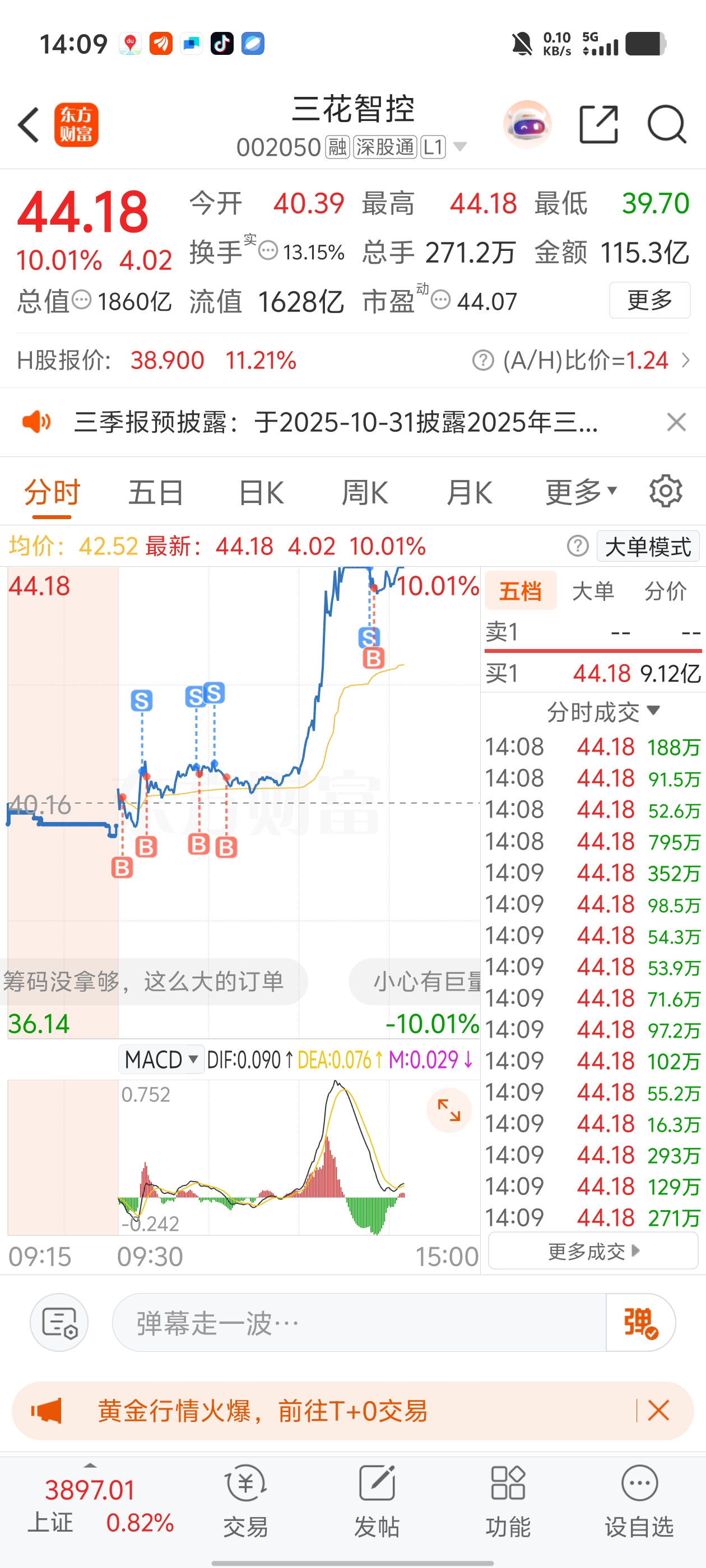 是一名短线选手,但是我看好三花,我决定在里面不断做题,前面两天回调,我出了半仓去