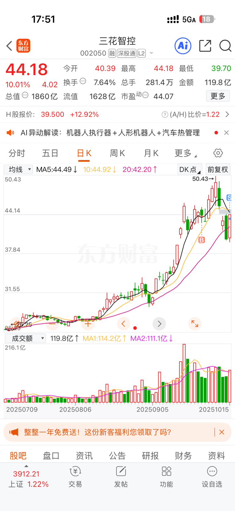$三花智控(SZ002050)$ 不玩了,三天拿走20个点,多大的利好都不想管了