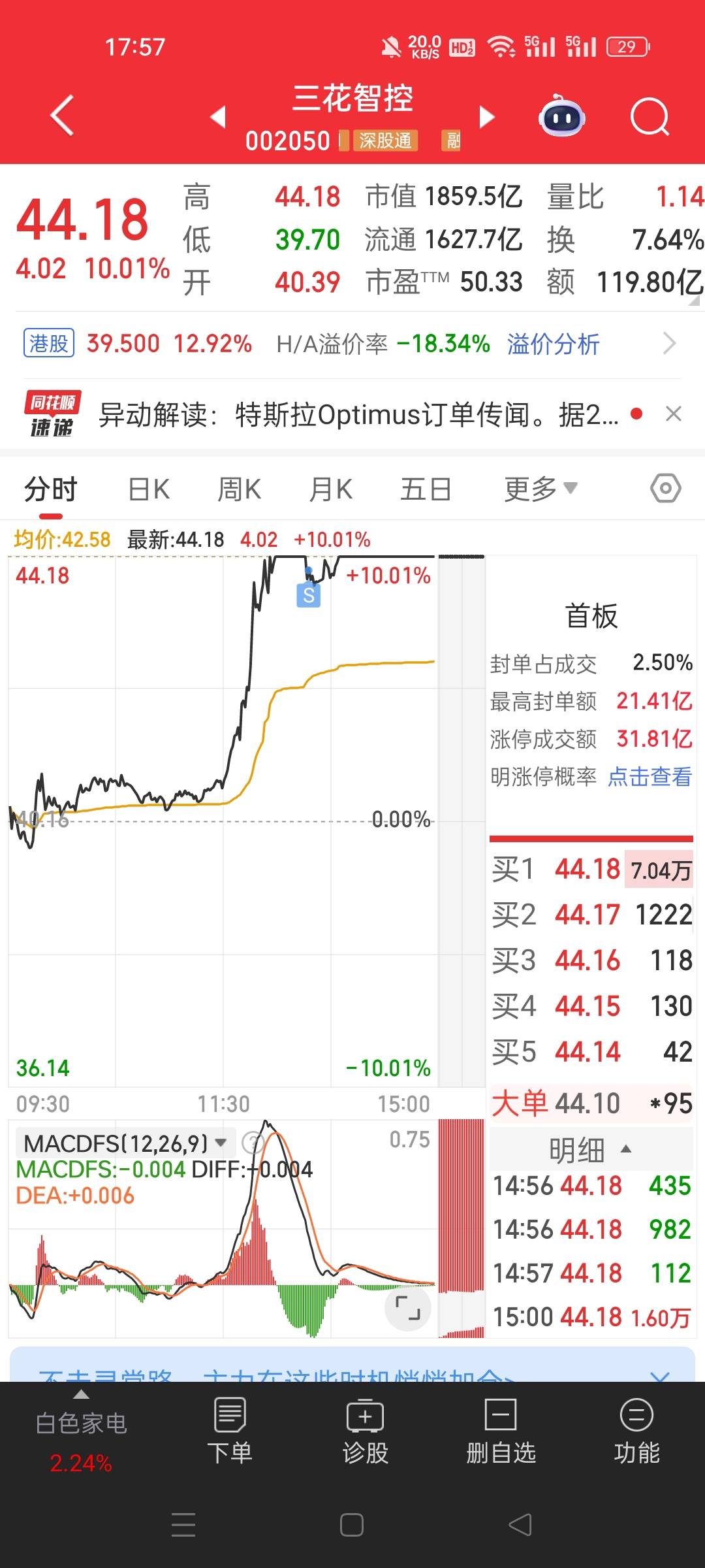 $三花智控(SZ002050)$ 开板的时候减仓了。希望明天继续。点赞的涨停