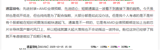$通富微电(SZ002156)$;先进封装+绑定AMD业绩预期、走势上看今天股价虽然是开盘先走急速下探,回踩十日均线以后盘中也是快速完成了修复之红盘,后面一直保持横盘状态,收盘以0.47%的涨幅收线。昨天晚评中已经给它吃了一个定心丸的,结论是先给了的,这一波有信心看它走出王者风帆的。它基本面没问题很扎实,加上q4业绩预期就这两点我是很有信心伺候它一个波段的。国内芯片封装地位领先,绑定全球芯片龙头AMD80%的封装业务。上一波PCB板块也走出了一个十倍股,那就是胜宏科技它是绑定的英伟达的供货PCB。这一波,通富微电跟胜宏科技相似度高度重合,未来可期。