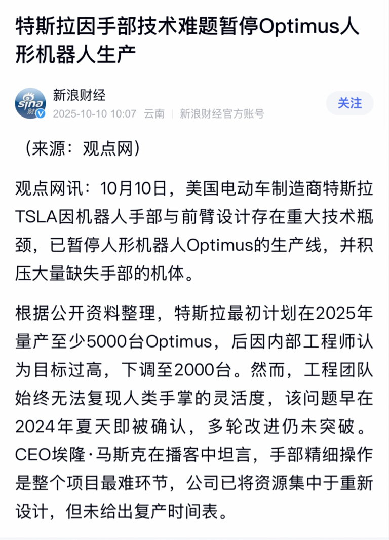 那新浪财经发的信息特斯拉暂停,是不是真的?