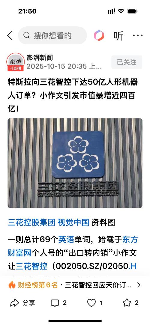 5:再次声明,我也有三花,我也希望股价上涨,但是我不希望股价被一些无良的游资通过制造莫须有的小作文所影响,我是准备拿到特斯拉机器人真正能大批量量产的那一天的。