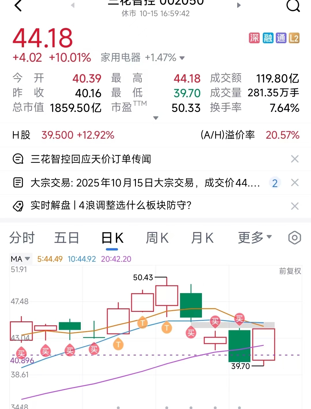 $三花智控(SZ002050)$ 一起来给三花智控画K线呀!
